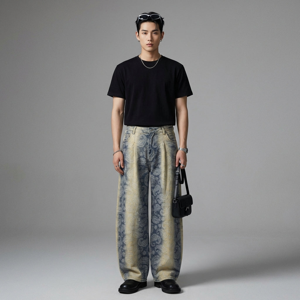 Scegli questi jeans sfumati per aggiungere un capo forte e distintivo al tuo guardaroba, unendo comfort ed estetica moderna ispirata alle tendenze coreane.