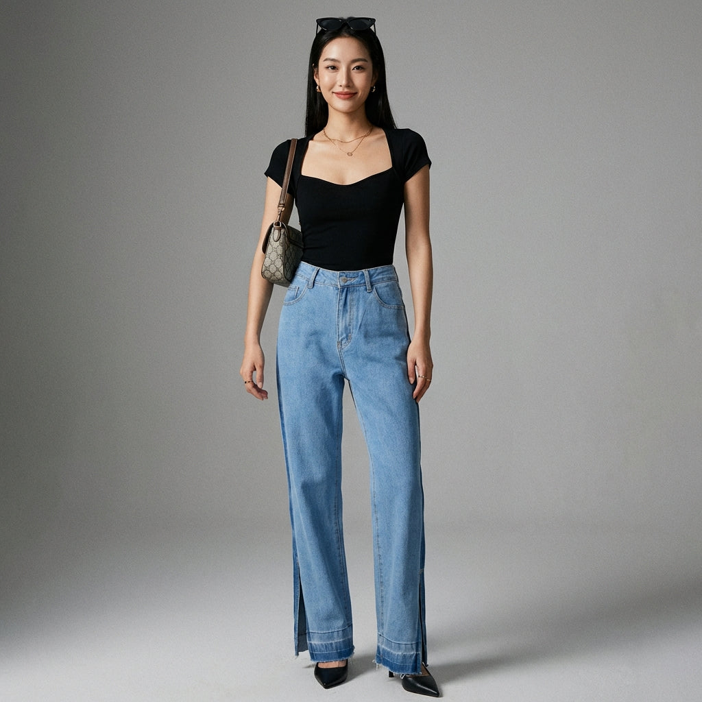 Questi jeans sono il capo essenziale per chi cerca comfort, stile e originalità, con un tocco di ispirazione K-fashion.