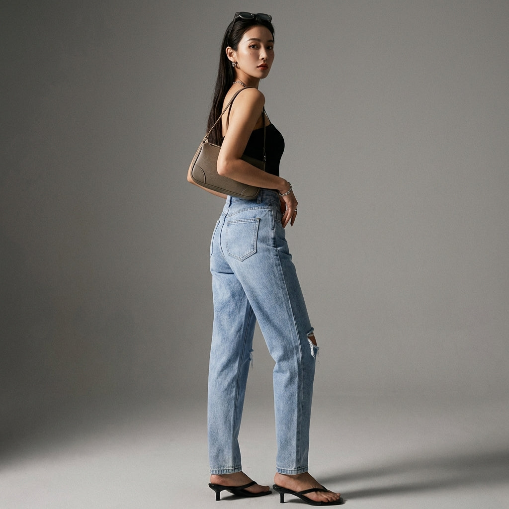 Adotta un look casual e di tendenza con i nostri jeans dritti a vita alta, ispirati allo stile BF. Questi pantaloni in denim presentano un taglio ampio e dettagli strappati per un'allure urbana e stilosa. Perfetti per tutte le stagioni, aggiungono un tocco di audacia al tuo guardaroba! ✨
