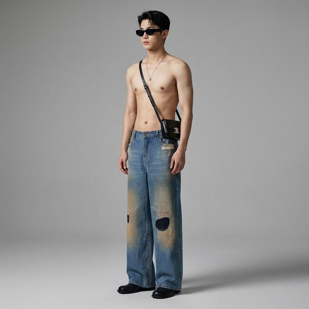 - Stile: Streetwear, Tendenza, K-fashion. Questi jeans incarnano lo spirito urbano e alla moda della moda coreana, ideali per un look casual e deciso.