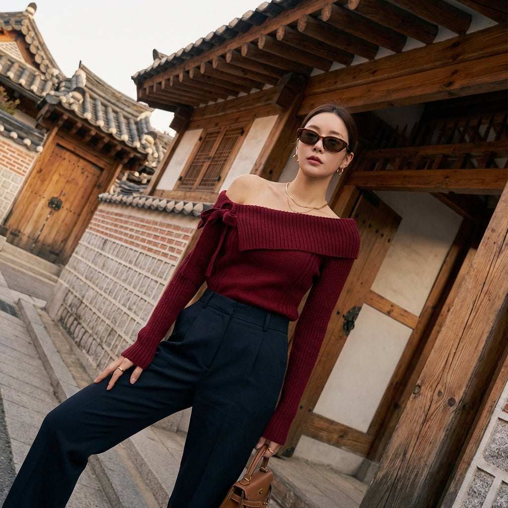 - Stile: Moda coreana, Elegante, Di tendenza. Questo maglione incarna l'eleganza minimalista e i tagli audaci della K-fashion.