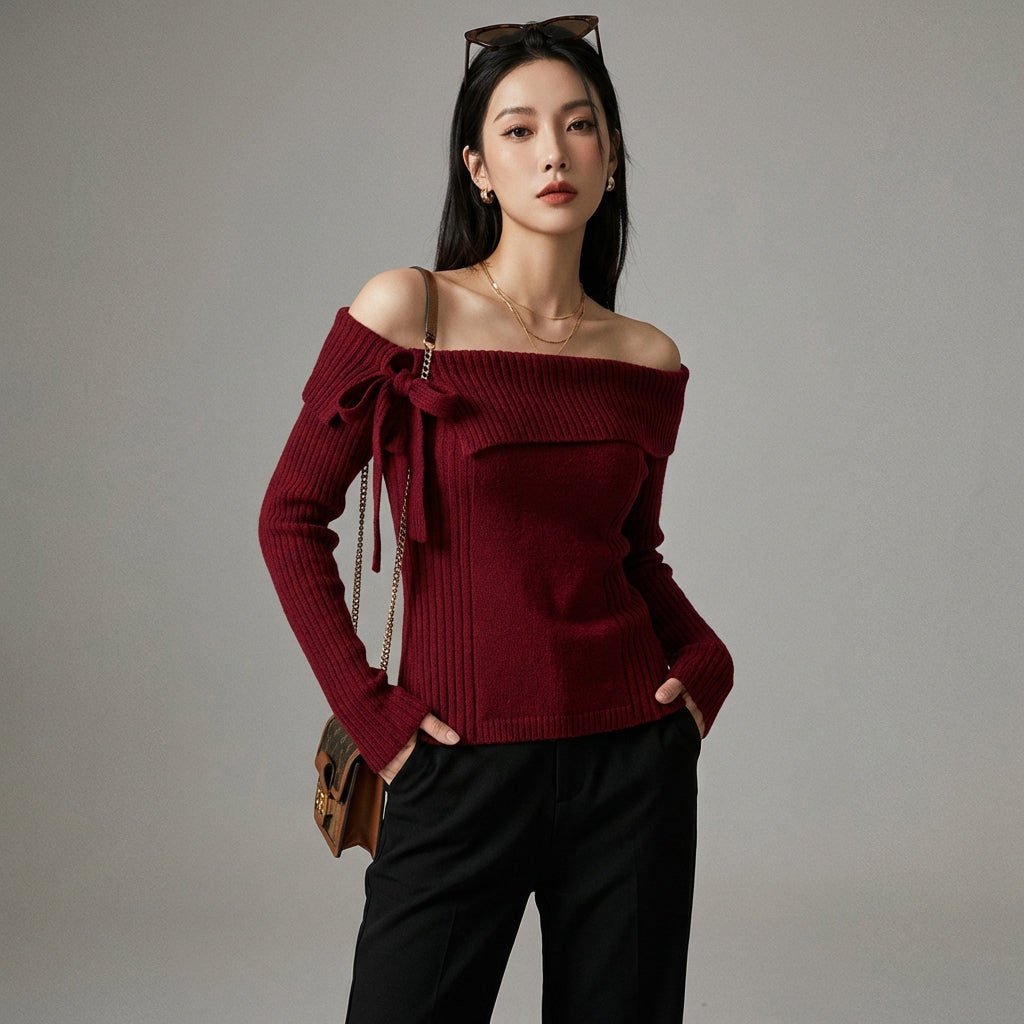 Adotta un look chic e moderno con il nostro maglione asimmetrico, caratterizzato da uno scollo monospalla e un delicato nodo. Il suo taglio aderente esalta la silhouette per un'allure sofisticata e di tendenza! ✨