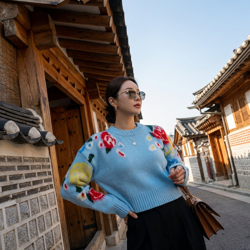 Questo maglione jacquard è l'aggiunta perfetta al tuo guardaroba per uno stile casual e chic, ispirato alle ultime tendenze K-fashion.