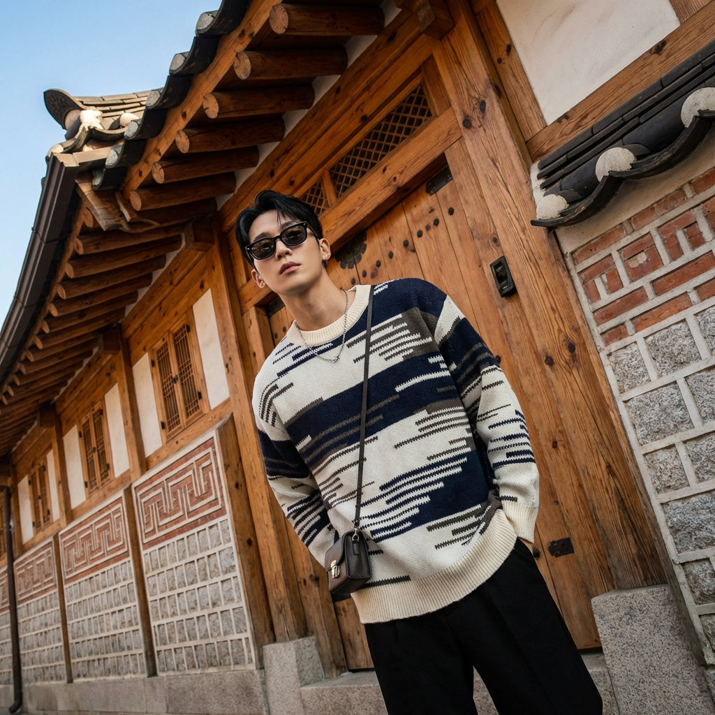 - Stile: Streetwear, Casual, K-fashion. Questo maglione incarna lo spirito della moda urbana coreana, con un tocco bohémien.