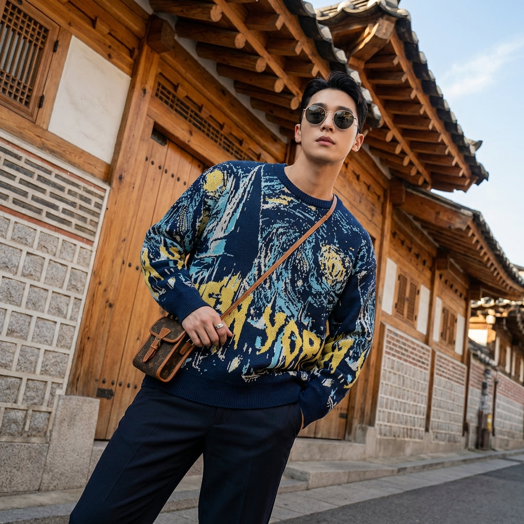 • Stile: Streetwear, K-fashion, Tendenza. Questo maglione incarna lo spirito casual e all'avanguardia della moda coreana, perfetto per un look moderno e urbano.