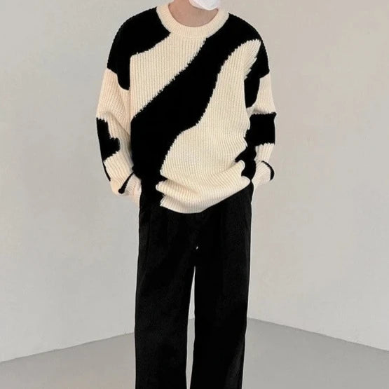 Scegli questo maglione a fantasia per un look deciso e di tendenza, celebrando l'estetica unica della moda coreana.