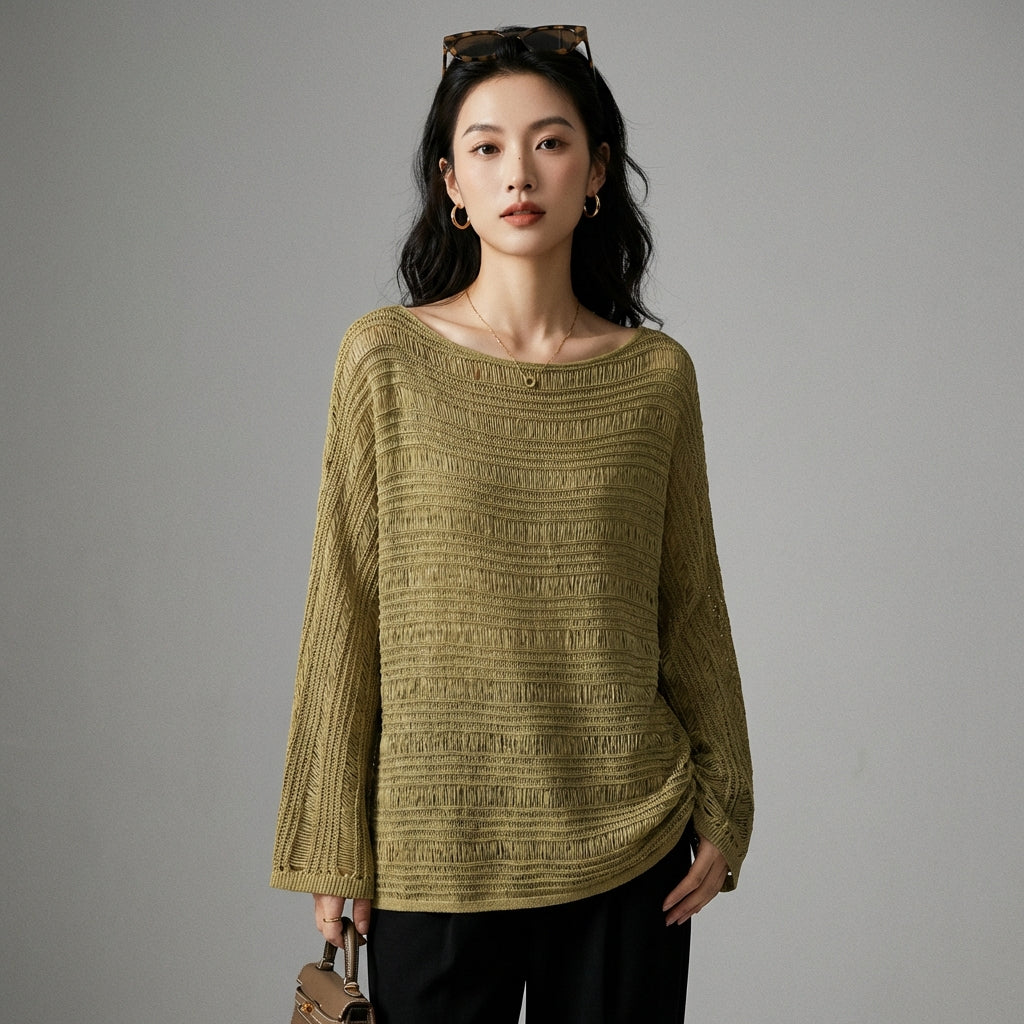 Adotta uno stile casual e di tendenza con il nostro maglione in maglia girocollo e vestibilità oversize. La sua tonalità verde oliva offre un tocco di modernità e si abbina facilmente a tutti i tuoi outfit. Perfetto per un look comodo ed elegante! 🌿