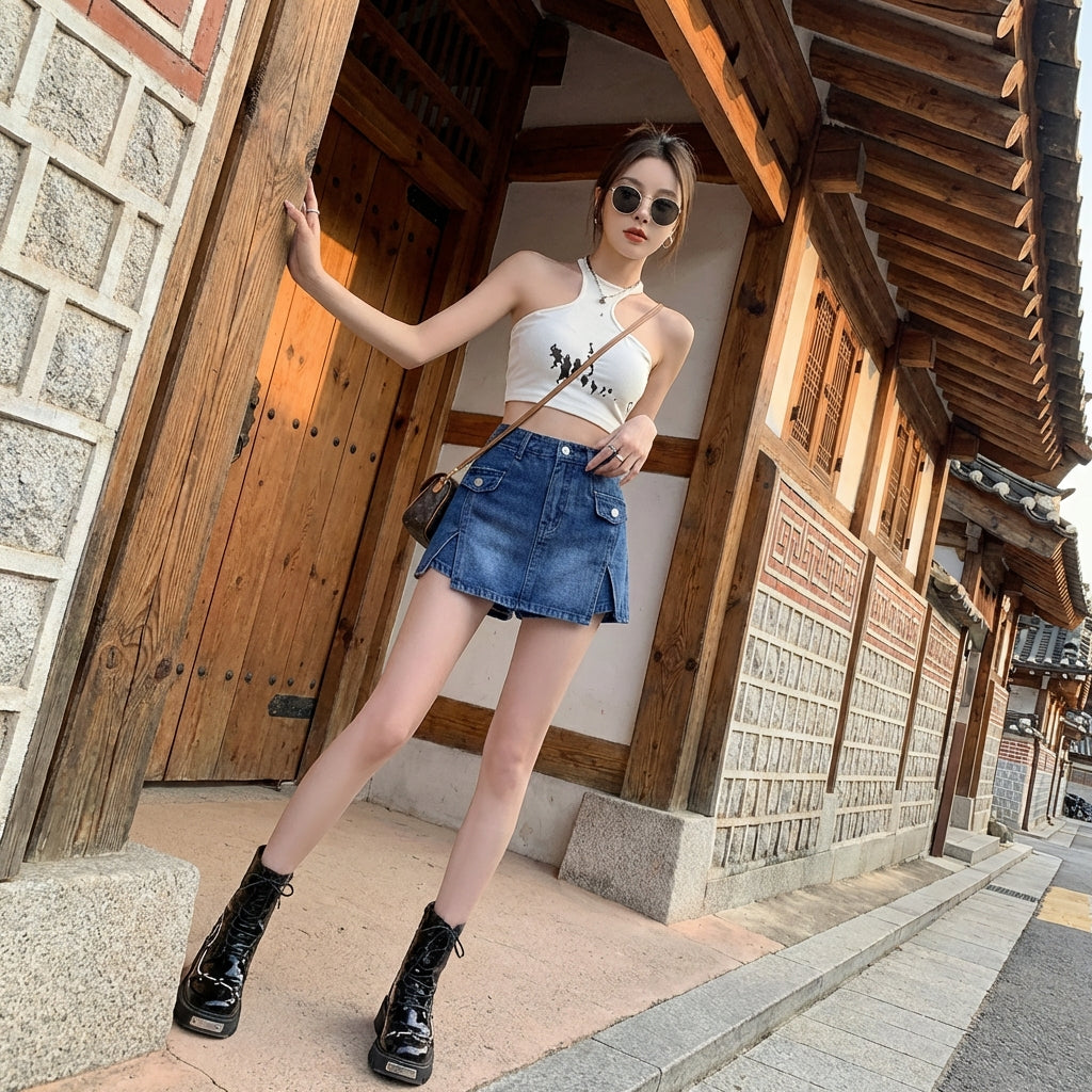 - Stile: Streetwear, Tendenza, K-fashion. Questa gonna incarna l'energia della moda urbana coreana, perfetta per un look audace e stiloso.