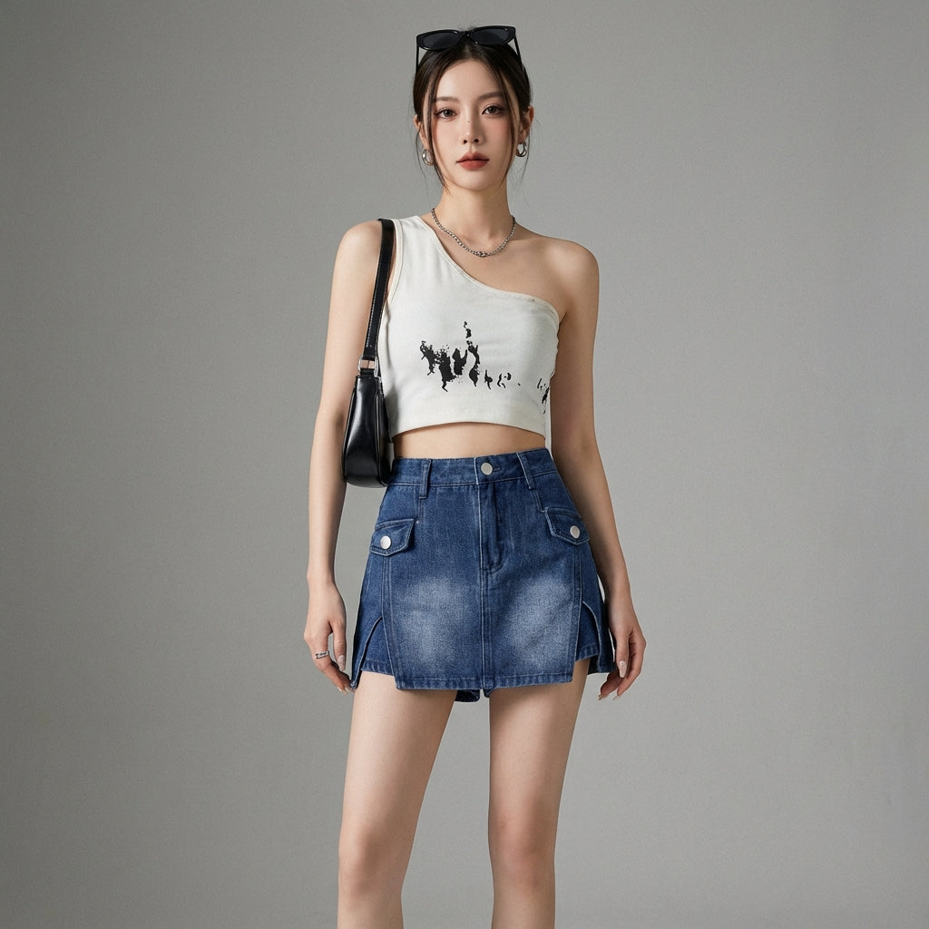 Afferma il tuo stile con la nostra minigonna in denim a vita alta, un capo irrinunciabile dal design lusinghiero e di tendenza. Il suo taglio aderente valorizzerà la tua silhouette per un look sexy e urbano! 🔥