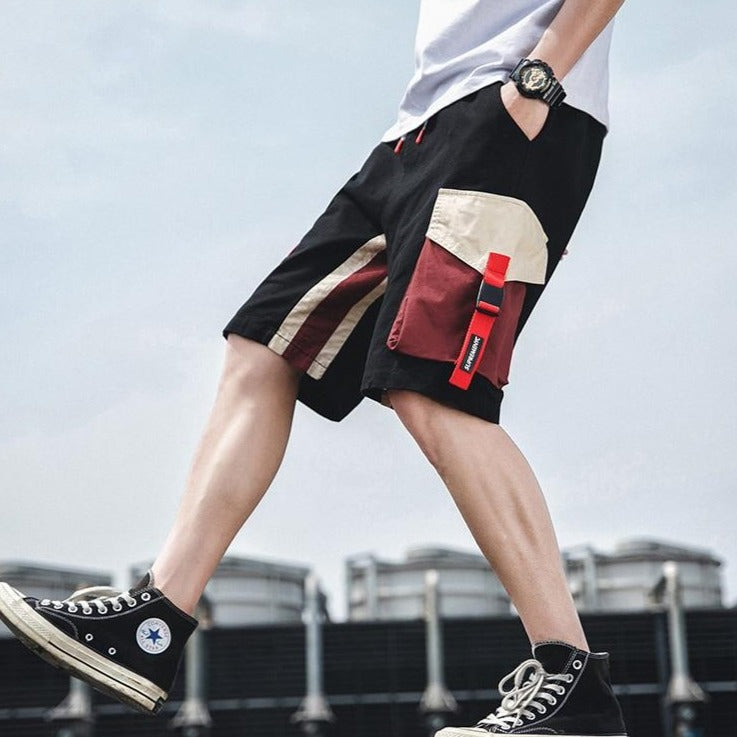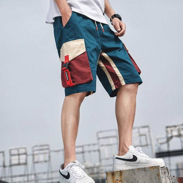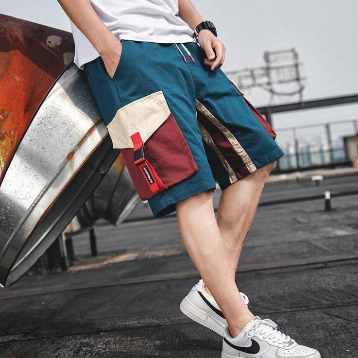 Questi pantaloncini si trovano all'incrocio tra streetwear e moda coreana. È un bel pezzo con diversi colori a contrasto. Il taglio è abbastanza lungo, arrivando a metà ginocchio. Questi comodi pantaloncini sono realizzati in cotone e poliestere per una migliore resistenza.
