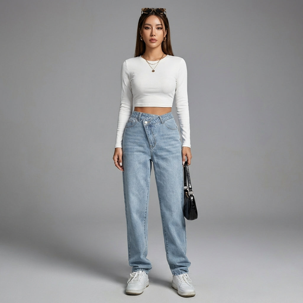 - Composizione: Denim di alta qualità. Un tessuto robusto e durevole che offre comfort e resistenza quotidiana, ideale per un uso frequente.