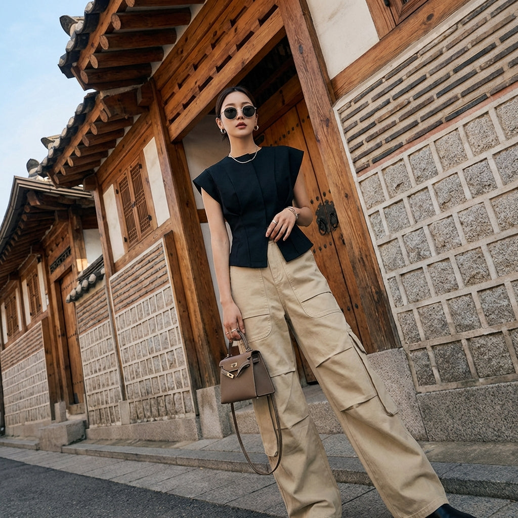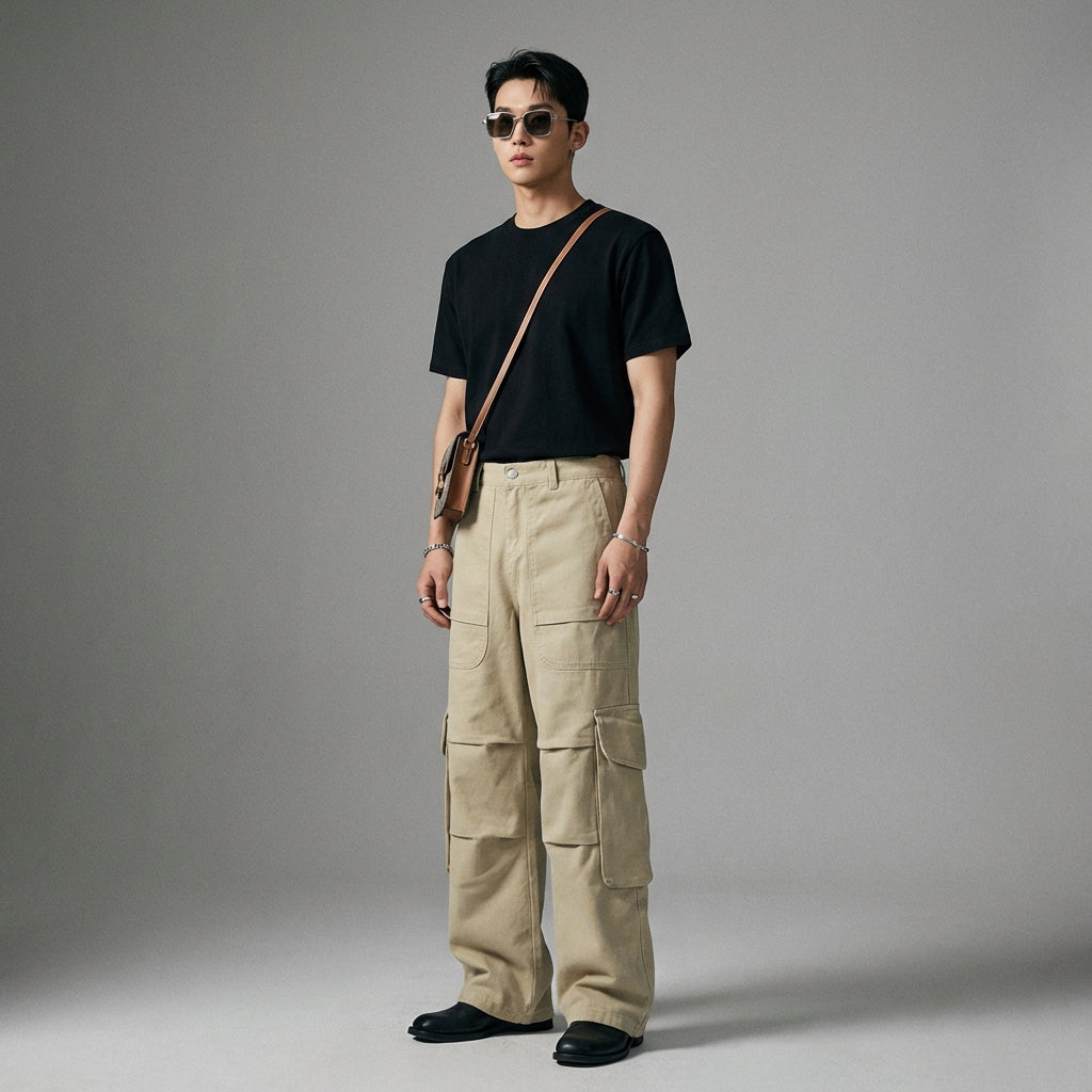 - Stile: Streetwear, K-fashion, Casual, Urbano. Questi pantaloni incarnano lo spirito della moda coreana con un tocco casual e di tendenza, perfetti per un look audace.