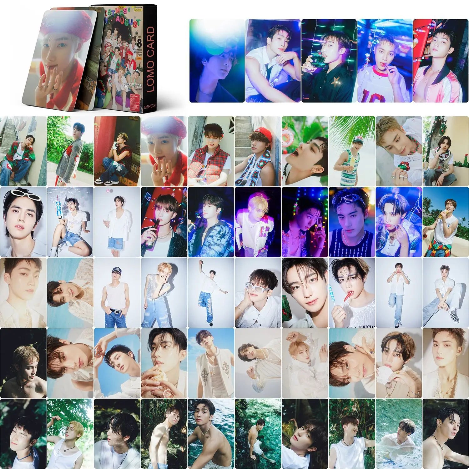 Per collezionisti e fan del K-pop, il Set di 55 foto Carte 'The Boyz Phantasy' è un must. Queste foto carte ad alta definizione, stampate fronte-retro su cartone rigido di qualità, catturano i momenti iconici del gruppo The Boyz. Che sia per completare il tuo album fotografico o per scambiare con gli amici, ogni carta di questa collezione rappresenta un frammento dell'universo The Boyz. Perfetto per fan di tutte le età, questo set è una finestra sulla fantasia del K-pop.