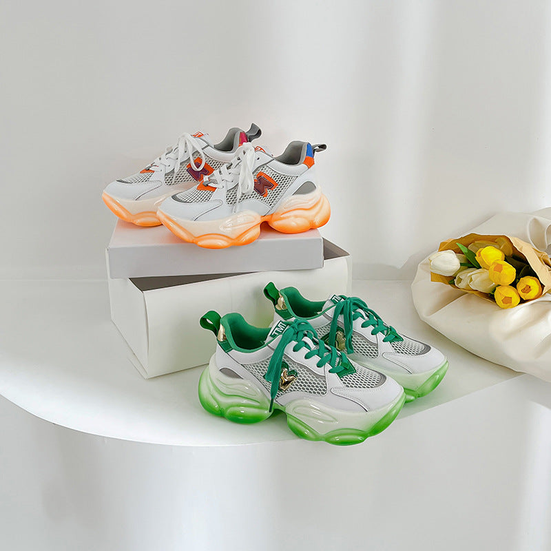 Eleva il tuo stile quest'estate con le nostre scarpe coreane alla moda da donna, disponibili in arancione e verde. Realizzate con una tomaia in pelle di vacchetta a doppio strato e una fodera in rete super traspirante, queste scarpe uniscono comfort e stile. Perfette per le attività quotidiane, offrono un aumento dell'altezza della soletta interna di 5-6 cm per una silhouette elegante. 🌞