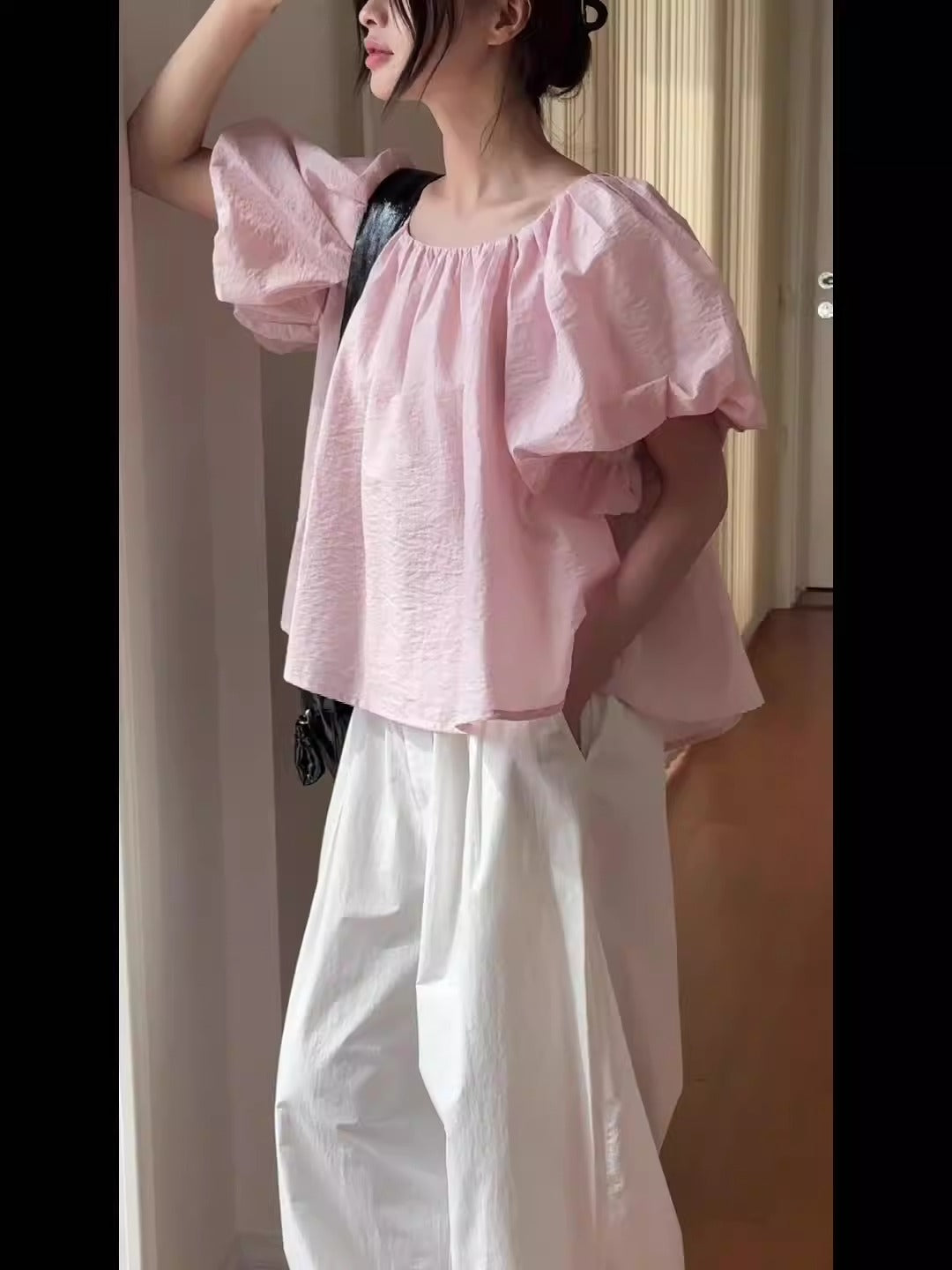 Adotta un look chic e casual con la nostra T-shirt coreana a maniche a sbuffo. Il suo taglio ampio e il girocollo la rendono un capo ideale per tutte le occasioni, che si tratti di lavoro, una serata fuori o una giornata rilassata. 🌟