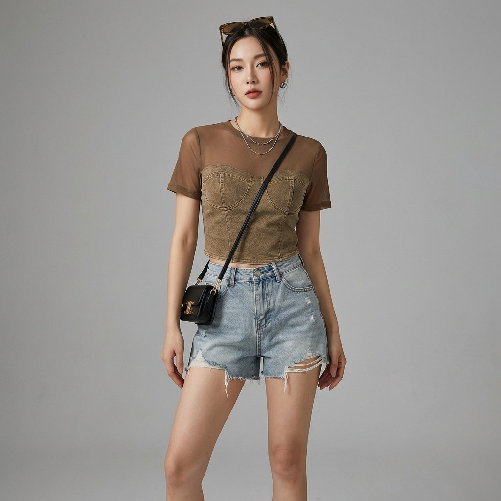 Adotta un look trendy e audace con la nostra T-shirt corta in maglia, perfetta per esprimere il tuo stile unico. Questo top aderente a girocollo e maniche corte è un must-have per le belle giornate! ✨