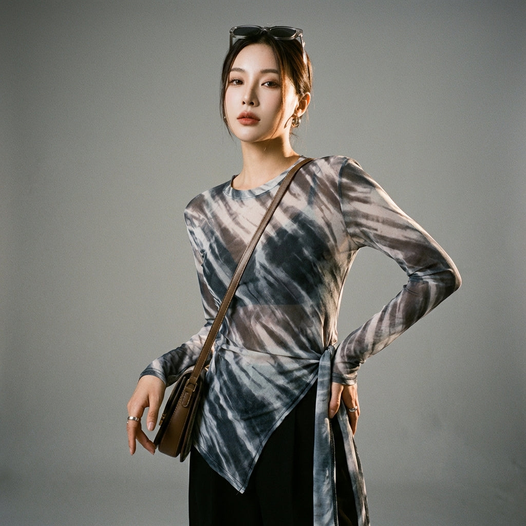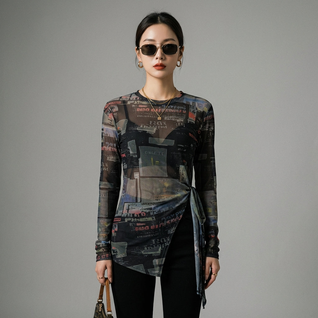 Afferma il tuo stile con la nostra t-shirt corta a maniche lunghe, caratterizzata da un design annodato irregolare e una vestibilità aderente. Perfetta per un look trendy e audace! ✨