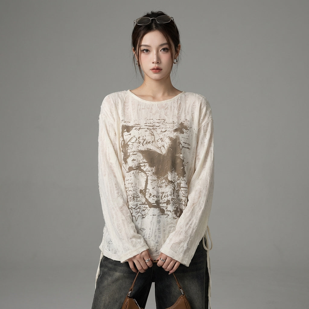 Adotta un look audace e alla moda con la nostra t-shirt a maniche lunghe, caratterizzata da dettagli sfrangiati per un tocco di originalità. Perfetta per uno stile casual ma deciso! ✨