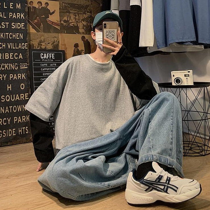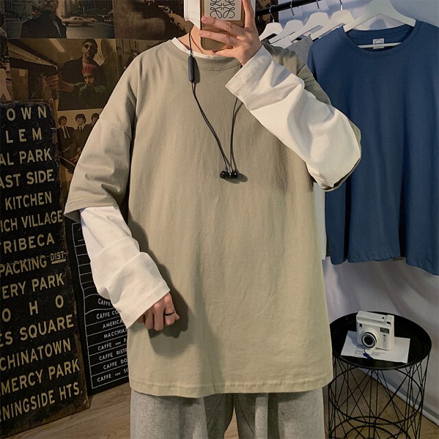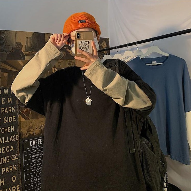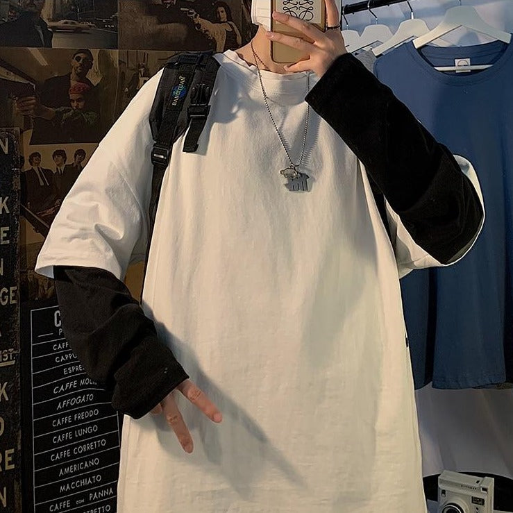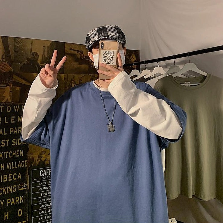 Una T-shirt coreana con due tipi di maniche lunghe.