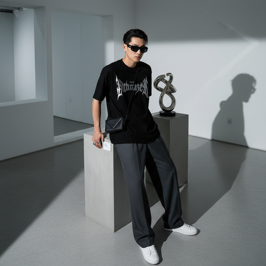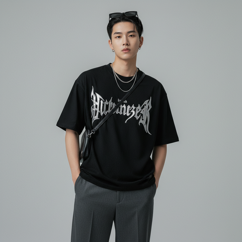 - Stile: Streetwear, Retrò, K-fashion. Questa t-shirt incarna l'essenza dello streetwear coreano con un tocco vintage, perfetta per un look urbano e casual.