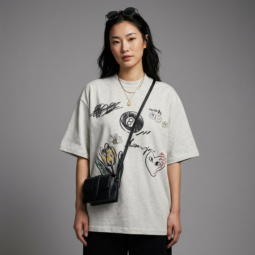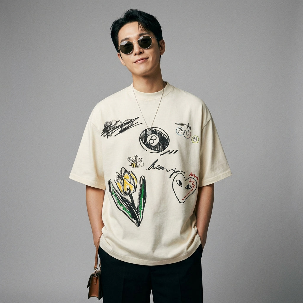Questa t-shirt è un capo essenziale per chi cerca di combinare comfort, stile e originalità con un tocco di moda coreana.