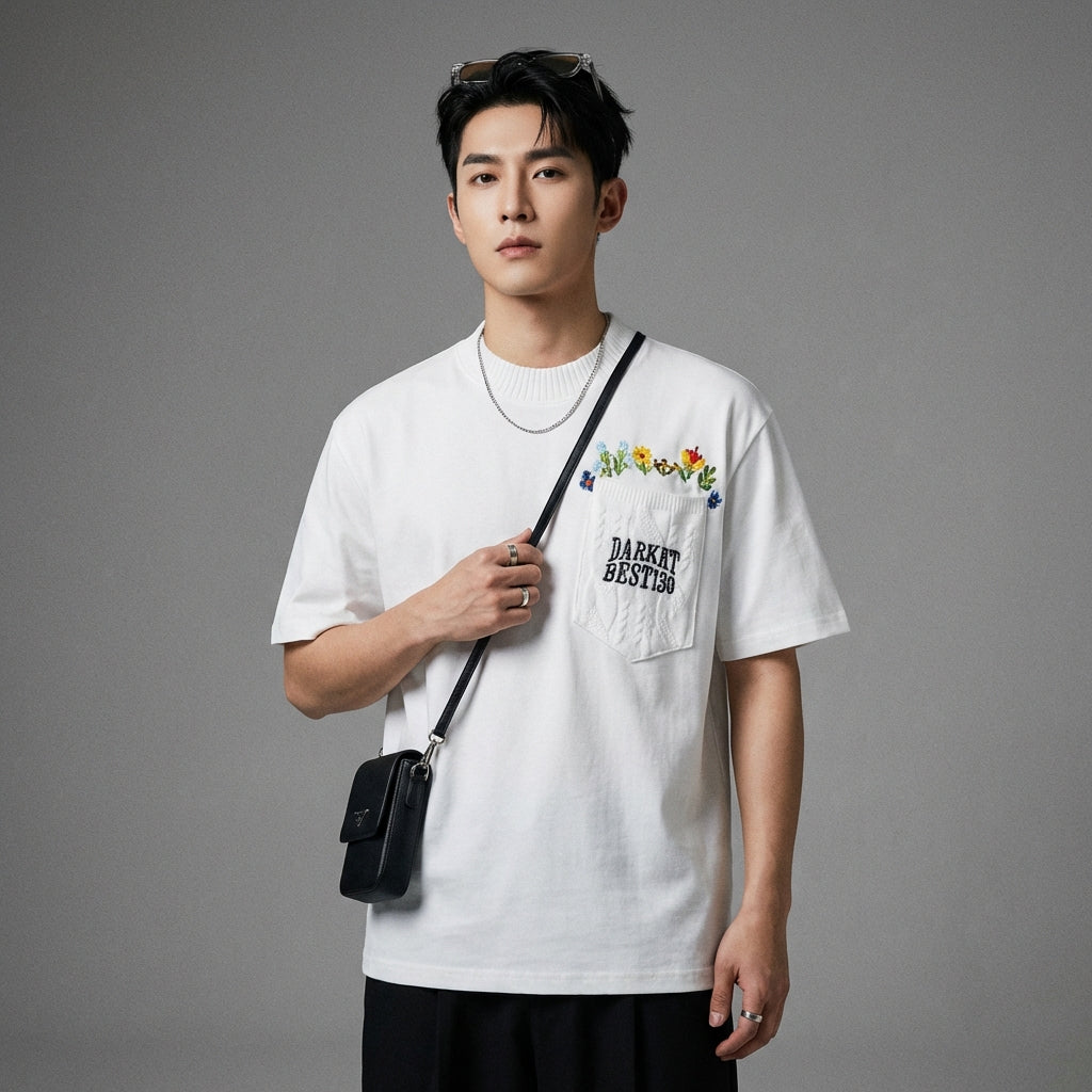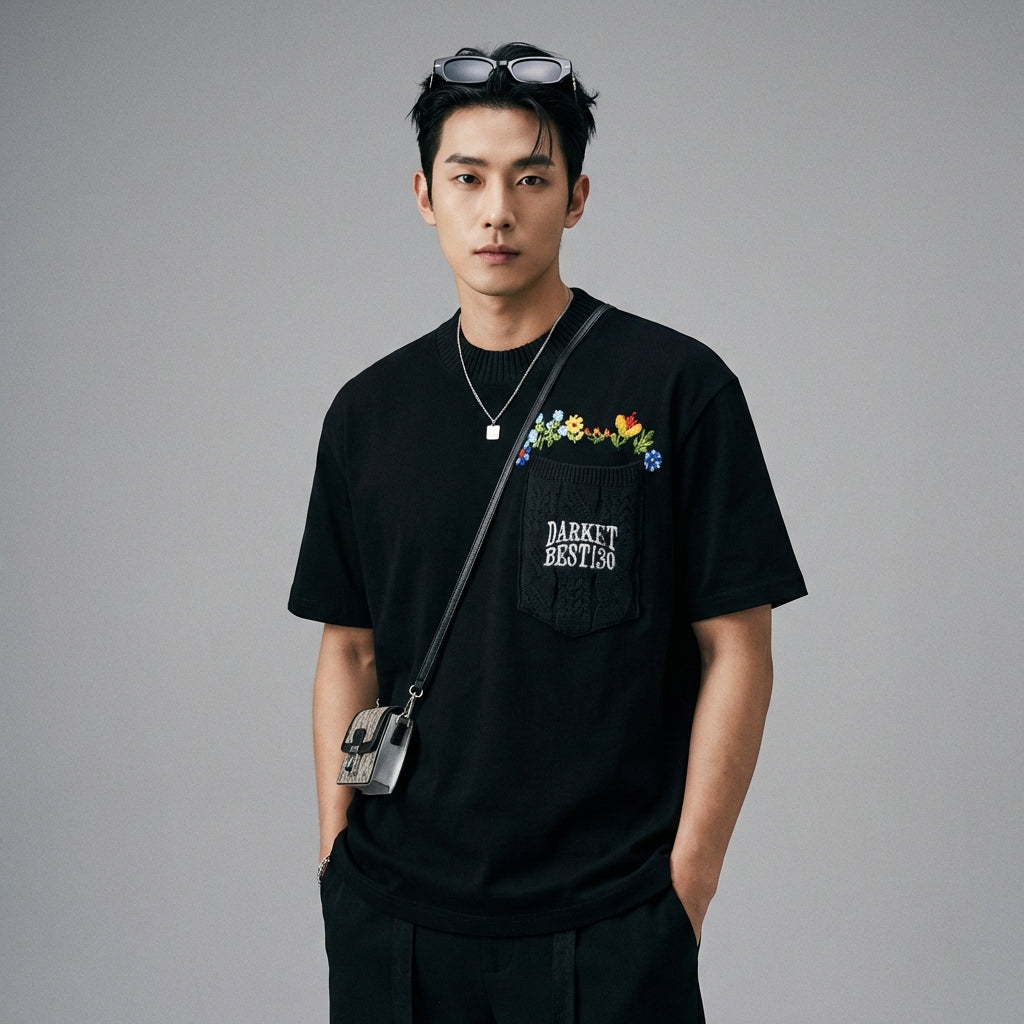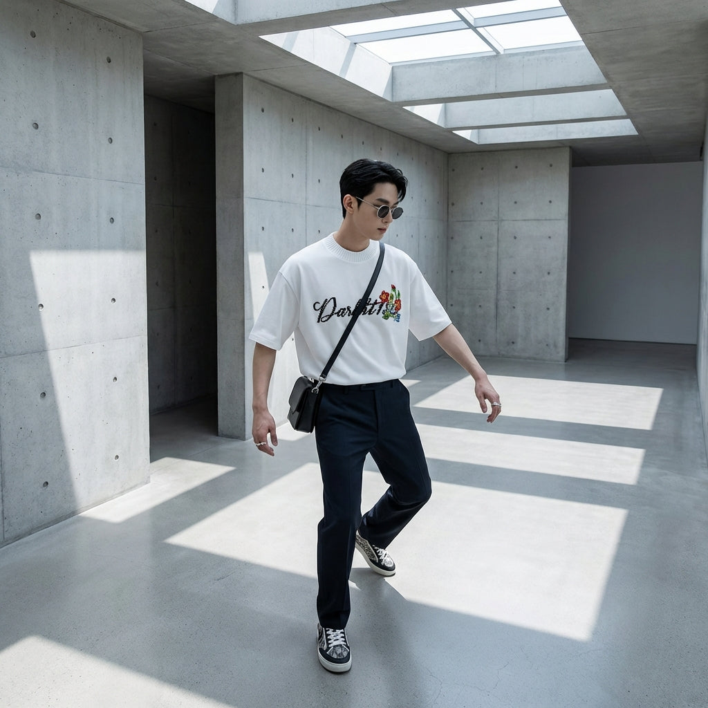 - Stile: Streetwear, K-fashion, Tendenza. Questa T-shirt incarna lo spirito casual e moderno dello streetwear coreano, perfetta per un look urbano e attuale.