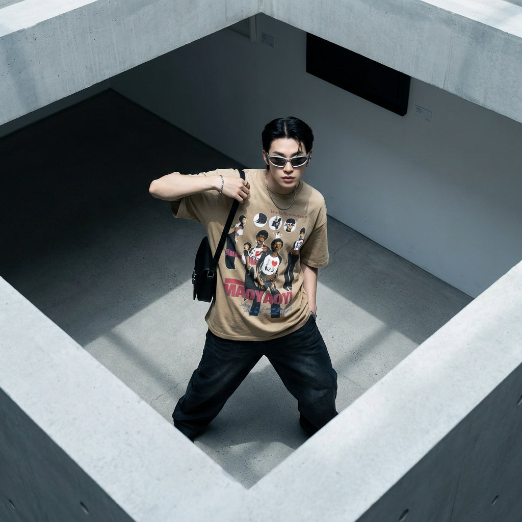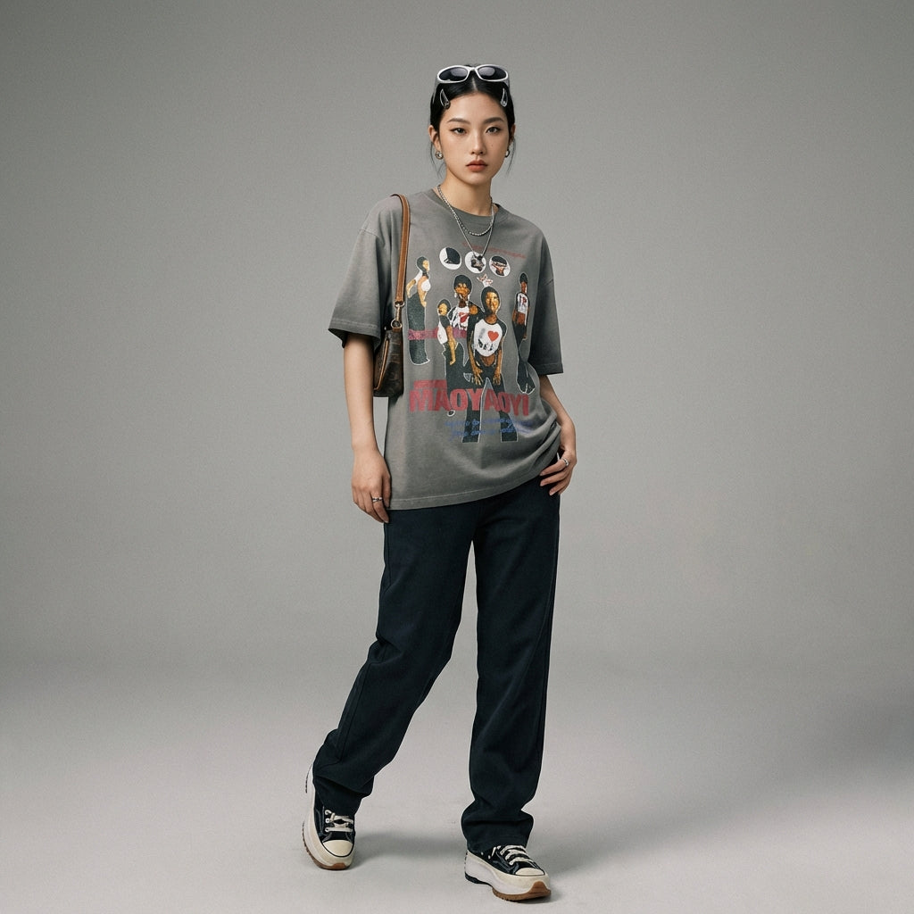 - Stile: Streetwear, K-fashion, Casual. Questa T-shirt incarna lo spirito della moda urbana coreana con un tocco casual e moderno.