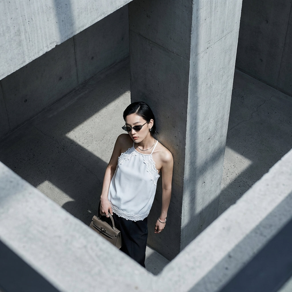 - Stile: Elegante, K-fashion, Minimalista. Questo top incarna l'eleganza discreta e le linee pulite caratteristiche della moda coreana contemporanea.