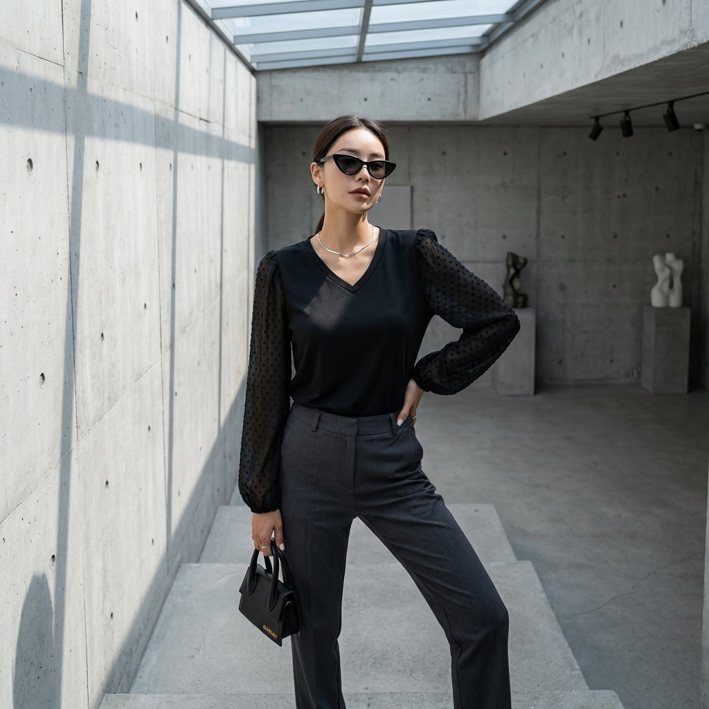 - Stile: Minimalista, Tendenza, K-fashion. Questo top incarna l'eleganza discreta e la versatilità della moda attuale, con un tocco di ispirazione coreana.