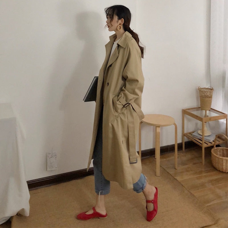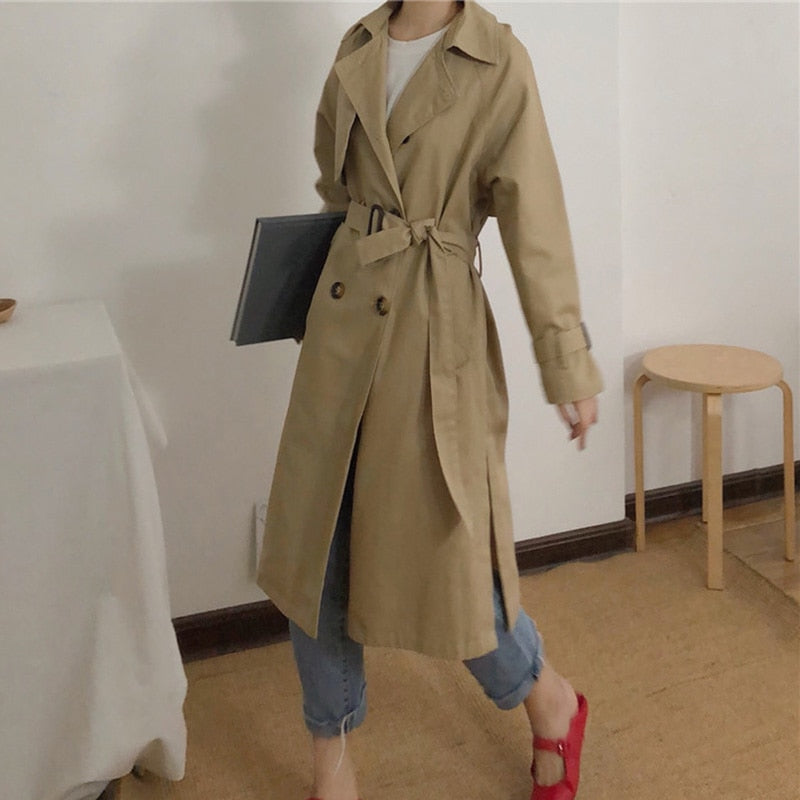 Il classico trench per giovani donne coreane.